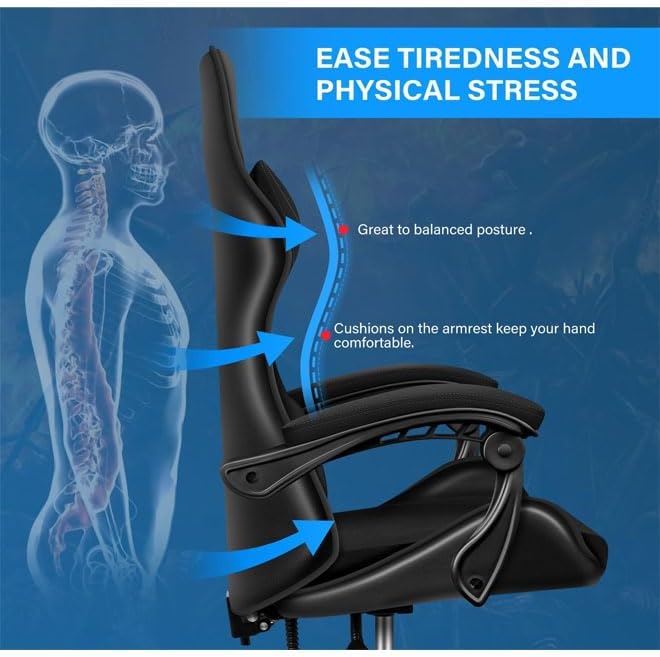 • Ergonomic Gaming Design: Designed to support your back and posture during long gaming or working sessions.