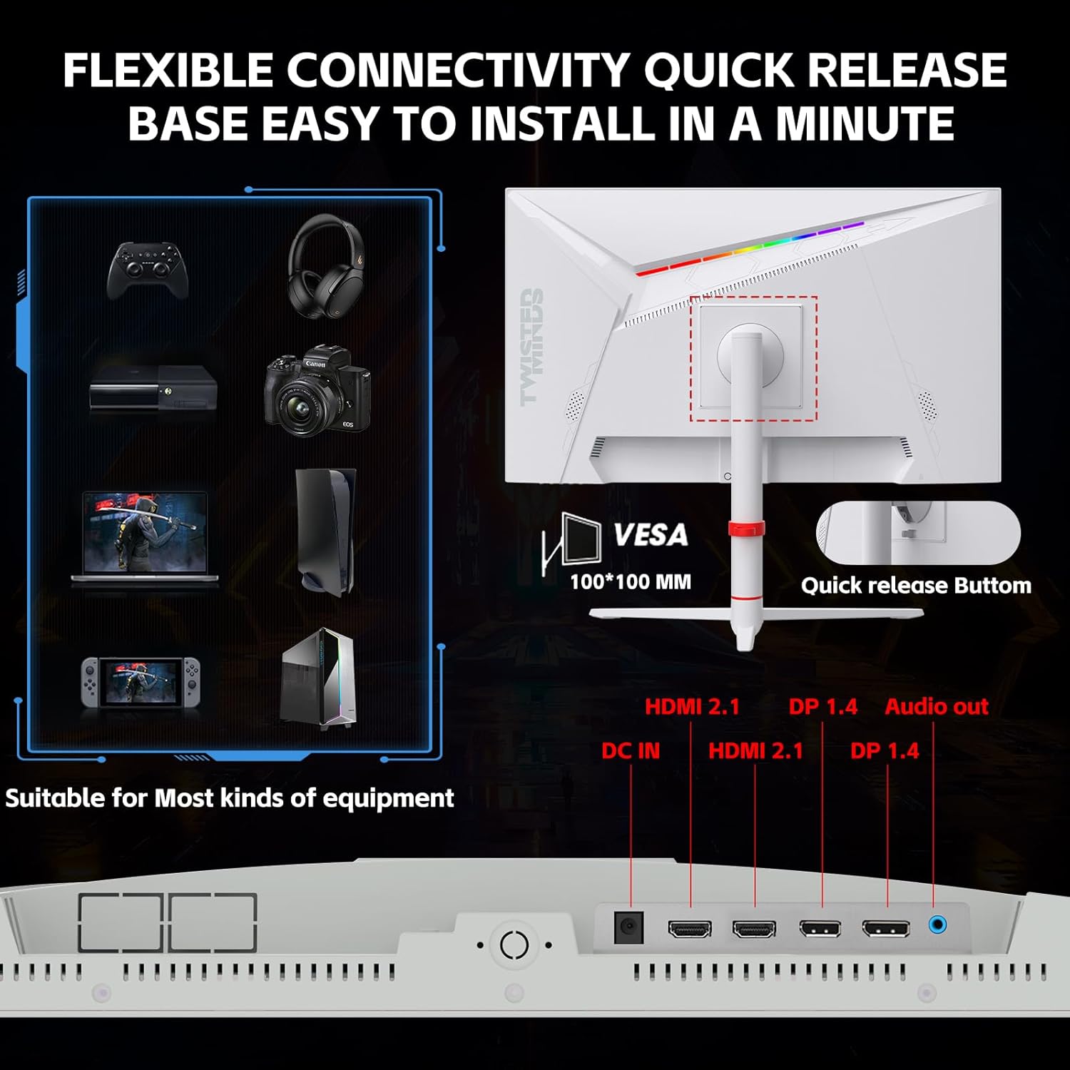 Twisted Minds Artic Pro Series Gaming Monitor, 27" Fast IPS Display, FHD Resolution, 360Hz Refresh Rate, 0.5ms Response Time, 2HDMI, 2DP, Audio Out, 16.7M Pixels, White | TMA27FHD360IPS Push your limits with the Twisted Minds Arctic Pro Series 27″ FHD Gaming Monitor (TMA27FHD360IPS) — built for gamers who demand the fastest response and smoothest visuals. Engineered with a Fast IPS display, this monitor combines speed, clarity, and color accuracy, making it the ultimate choice for esports and competitive gaming. ◘ Blazing 360Hz Refresh Rate Experience ultra-smooth motion with a 360Hz refresh rate, ensuring you never miss a frame in fast-paced action games. Perfect for FPS, racing, and esports tournaments. ◘ Instant 0.5ms Response Time With 0.5ms GtG response, input lag and motion blur are virtually eliminated, giving you razor-sharp accuracy and a true competitive edge. ◘ Crystal-Clear FHD Display The 27″ Full HD resolution (1920×1080) paired with Fast IPS technology delivers sharp details, vivid colors, and wide 178° viewing angles for immersive gameplay. ◘ Versatile Connectivity Equipped with 2× HDMI 2.0, 2× DisplayPort 1.4, and Audio Out, this monitor connects seamlessly to gaming PCs, PlayStation 5, and Xbox Series X. ◘ Stylish Arctic White Design A modern white finish with sleek edges enhances your setup, while ergonomic adjustments (tilt, swivel, height) ensure maximum comfort during long sessions. ◘ Eye-Care Technology Flicker-free display and low blue light mode protect your eyes, so you can game longer without strain. 🌟 Why Choose the Arctic Pro 27″? ■ 360Hz refresh rate for ultra-competitive play ■ 0.5ms response time for unmatched precision ■ Fast IPS panel with vivid colors & wide angles ■ 2× HDMI + 2× DP + Audio Out for full connectivity ■ Ergonomic design with Arctic white aesthetics ■ Built for serious gamers in Qatar Available now at Onaiza.qa – Qatar’s trusted store for gaming monitors, accessories, and esports-ready gear. ..Show Less