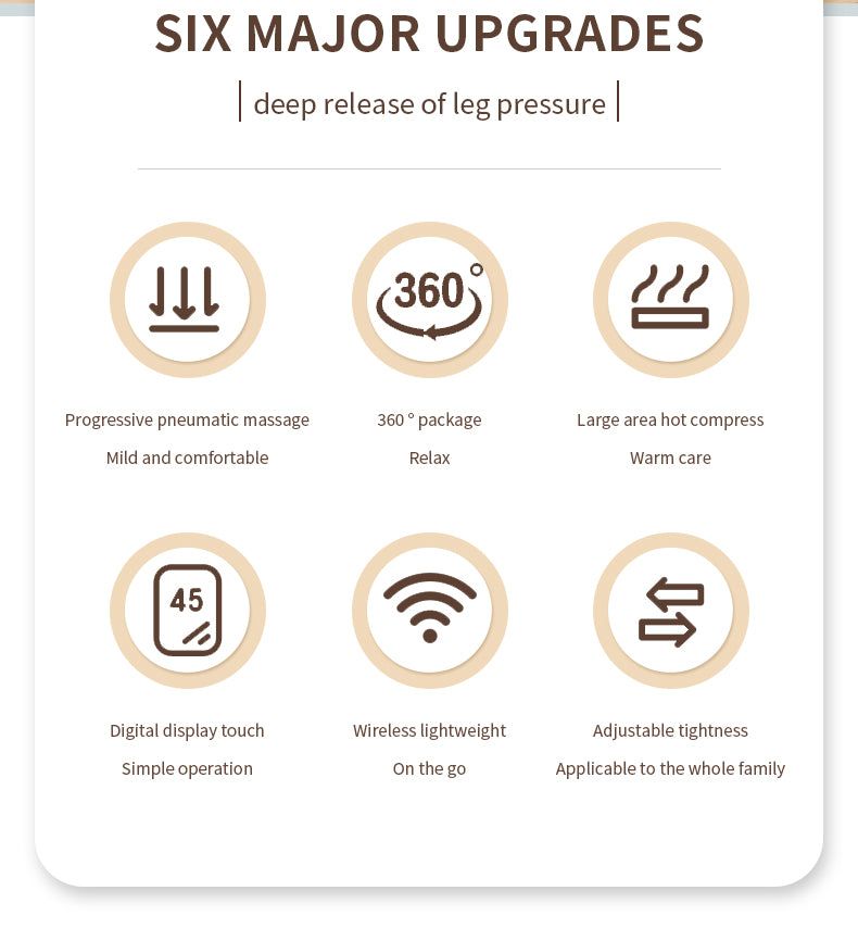 إذا كنت تبحث عن مدلك ساق لاسلكي وقابل للتعديل وفعال مع ضغط الحرارة والهواء ، فإن منتجنا هو الخيار الأمثل. تحسين الدورة الدموية ، وتخفيف الوذمة والألم ، وتعزيز استرخاء العضلات مع مدلك الساق مع مدلك الساق بضغط الحرارة والهواء.