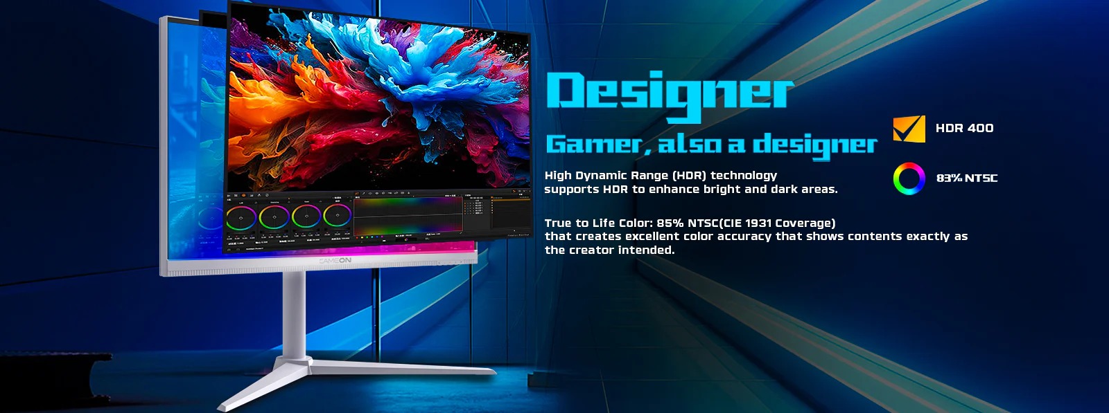 Color Gamut: sRGB 120% coverage and NTSC 85%, with HDR10 support.
