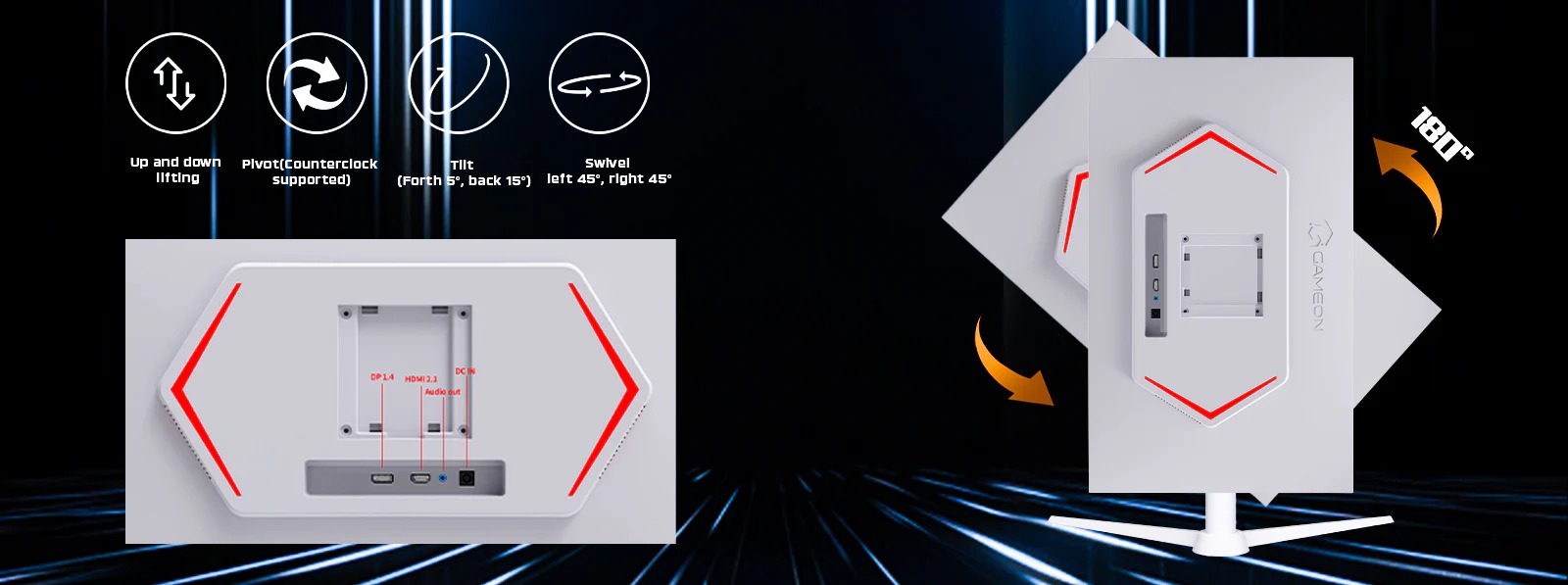 I/O Ports: HDMI 2.1, DP 1.4, Audio Out, and DC 2.1 input
