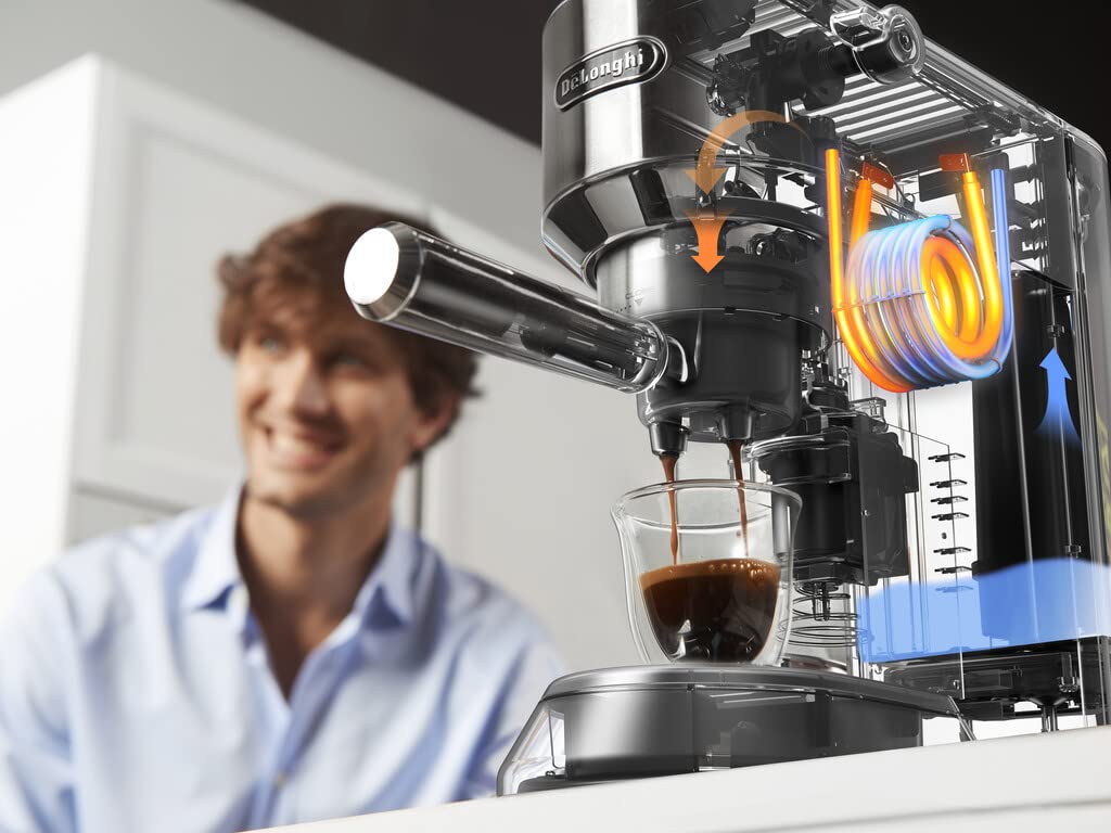 De'Longhi patented thermoblock technology that heats up the ideal brewing temperature in just 40 seconds;Sleek and ultra slim design with compact fit (requires 6" Inches of space)