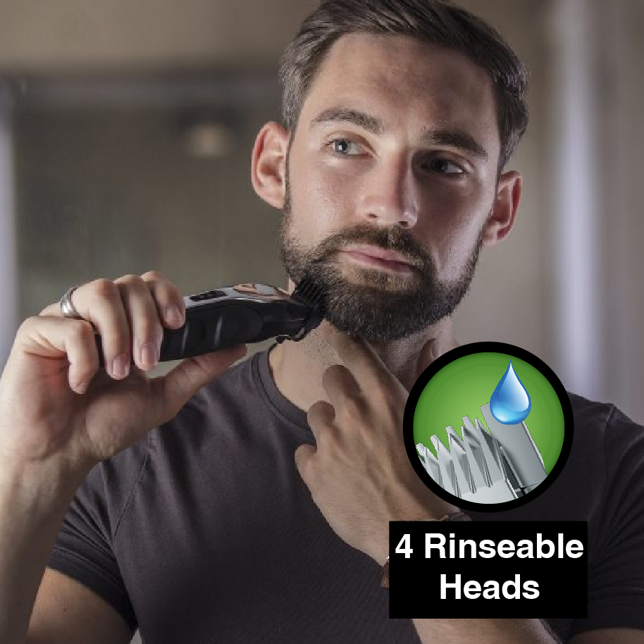 This beard trimmer is powerful, quiet, lightweight and designed to speed up your grooming time. It comes with many different head attachments so that you can groom your facial and body hair to different lengths and preferences. The multi-groom beard trimmer has the look, feel and quality that you expect from Wahl.